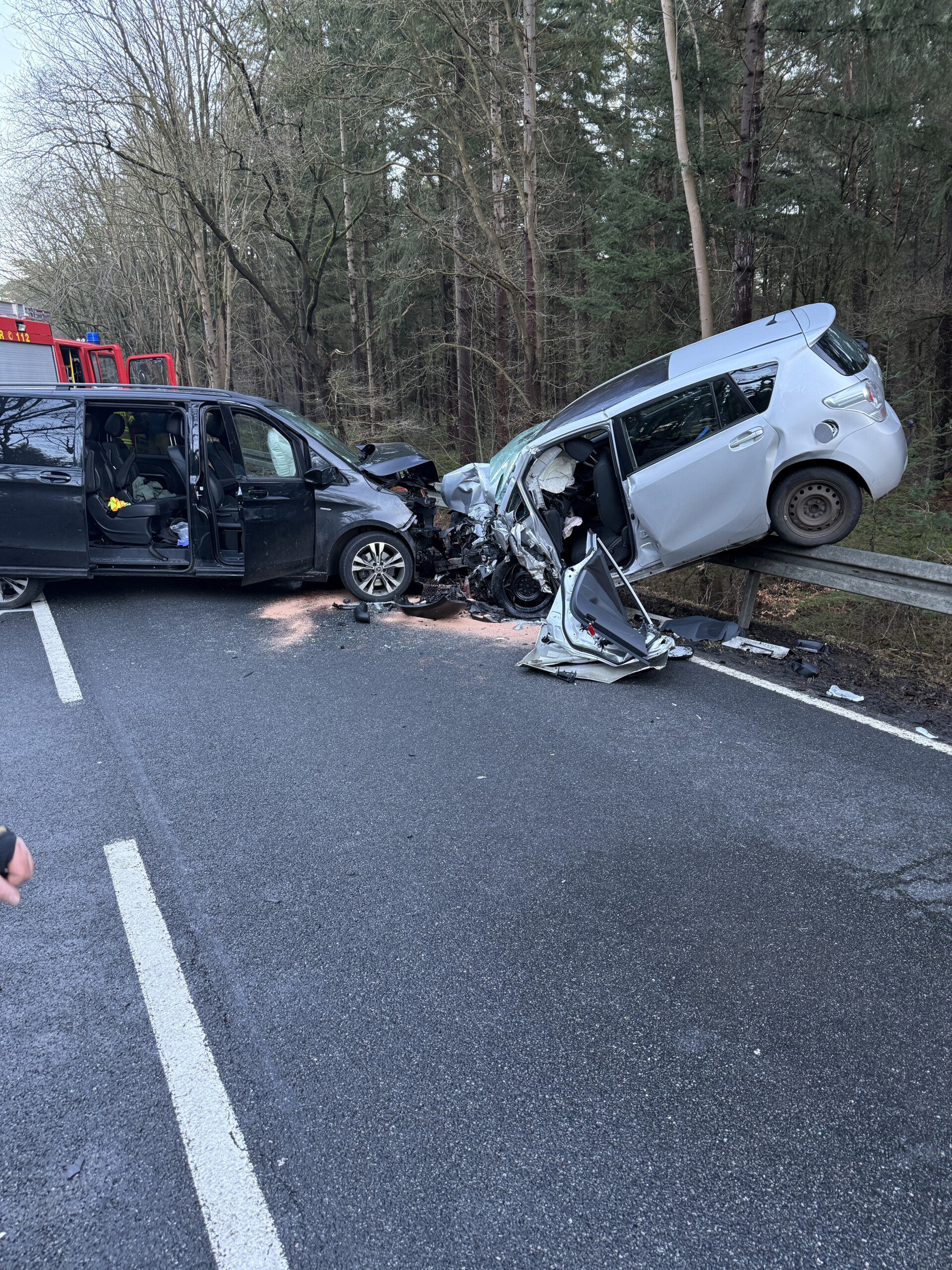 Am heutigen Tag kam es auf der Bundesstraße 214 zwischen Barver und Rehden zu einem schweren Verkehrsunfall. Gegen 15:06 Uhr wurden die Ortsfeuerwehren Rehden und Barver zu einem Frontalzusammenstoß von zwei Pkw alarmiert.